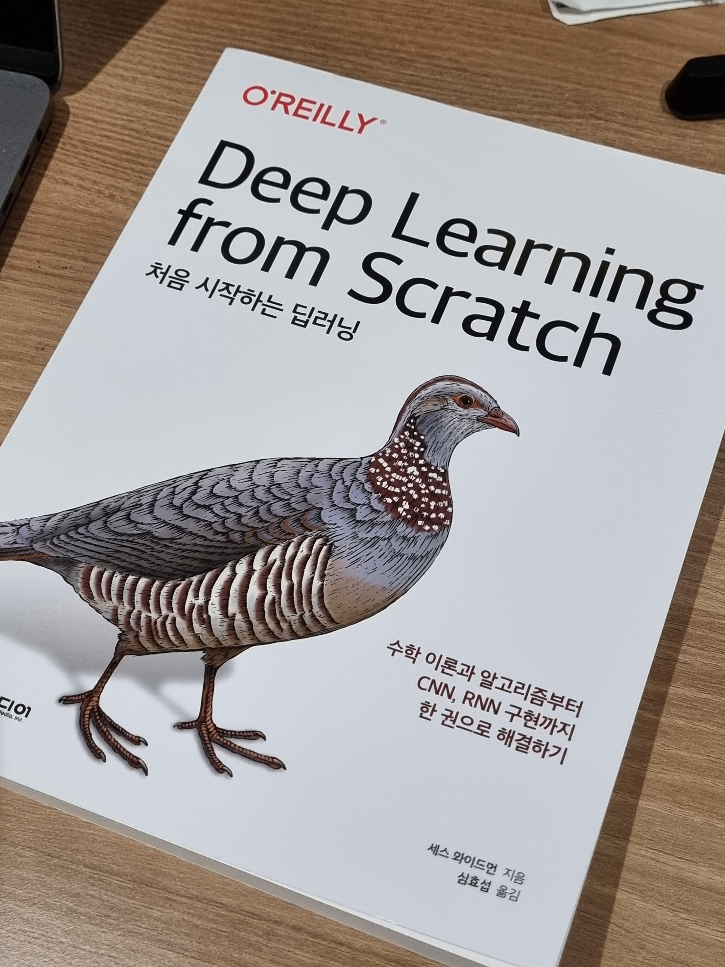 '한빛미어 Deep Learning from Scratch 처음 시작하는 딥러닝' 책으로 딥러닝의 기초를 배워보자. 책을 읽기 전에 편미분, 행렬, 미적분, 극한 등 수학적 소양, 인공지능, 파이썬에 대한 기초는 알고 읽기를 추천한다. 내 경우는 그런 부분들이 약해서 정말 더디게 읽고 있다.