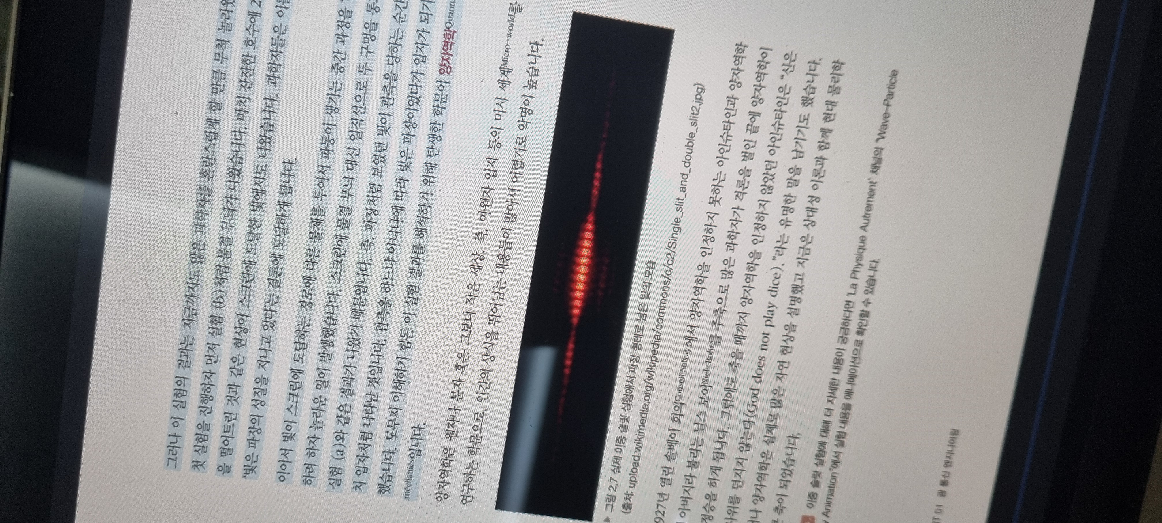 특히 맘에 들었던 건, 딱딱한 과학 이론을 재미있는 이야기로 풀어낸 점이었어요. '이중 슬릿 실험' 이야기, 다들 한 번쯤 들어봤을 거예요. 빛이 입자면서 파동이라는, 머리 터질 것 같은 그 실험 말이에요. 사실 전 이 책에서 처음 알았어요! :) 근데 이 책에서 그걸 응용해서 노벨상 받은 사람이 바로 아인슈타인이라고 하더라고요! 막연히 알고 있던 게 실제 역사 속 인물과 연결되니까 지식이 확 살아나는 느낌이었죠.